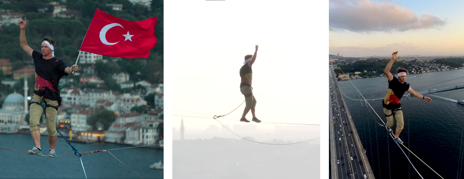 Slackline alanında 3 kez dünya şampiyonu olan Estonyalı Red Bull sporcusu Jaan Roose, yepyeni bir ilke imza attı. 15 Eylül Pazar günü, ip üzerinde, 15 Temmuz Şehitler Köprüsü’nde Anadolu yakasından Avrupa yakasına yürüyen Red Bull sporcusu, “ip üstünde kıtalar arası geçiş yapan ilk kişi” olarak tarih yazdı.